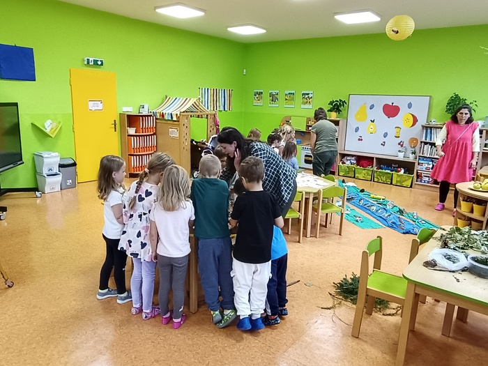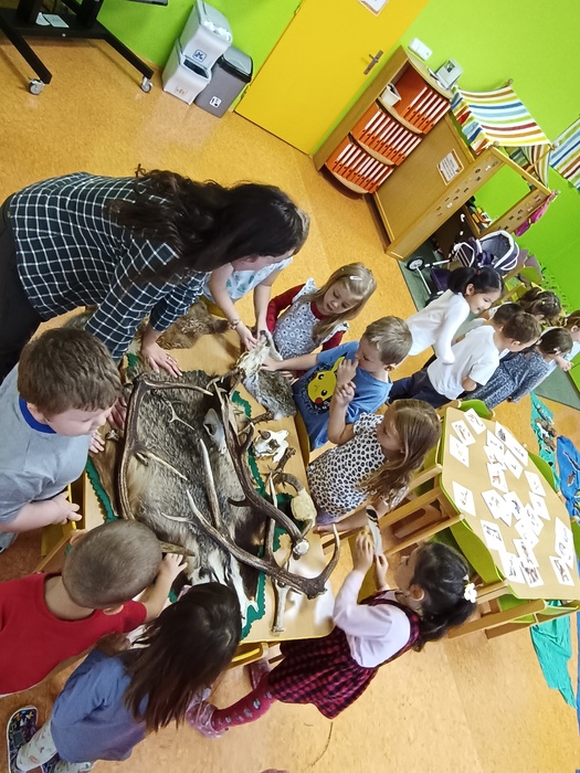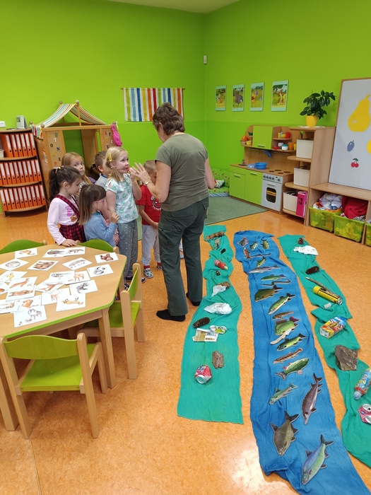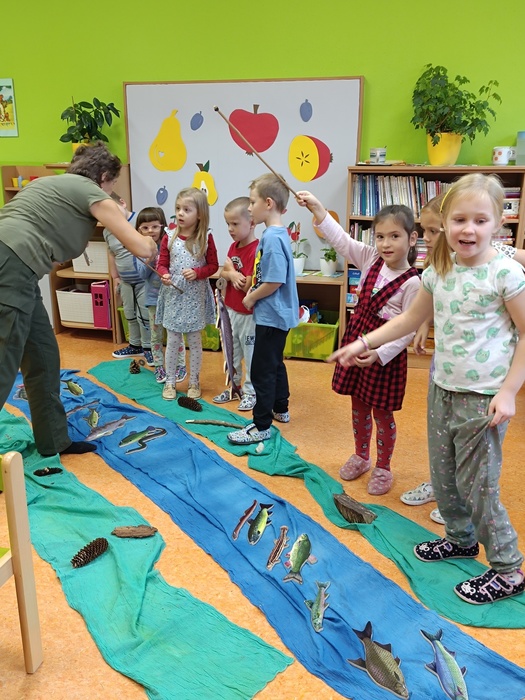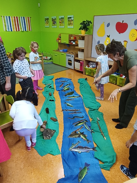 Zaměstnanci organizace Lesy ČR nám připravili program o vodě, zvířatech i lesních rostlinách. Prakticky jsme si vyzkoušeli, jak se čistí příroda od odpadků, jak se loví ryby, práci s kladivem. Smyslovým zážitkem byla prohlídka kožešin, parohů a přírodnin. Dětem se také podařilo spojit zvířecí rodiny a poznávat vodní ptactvo.