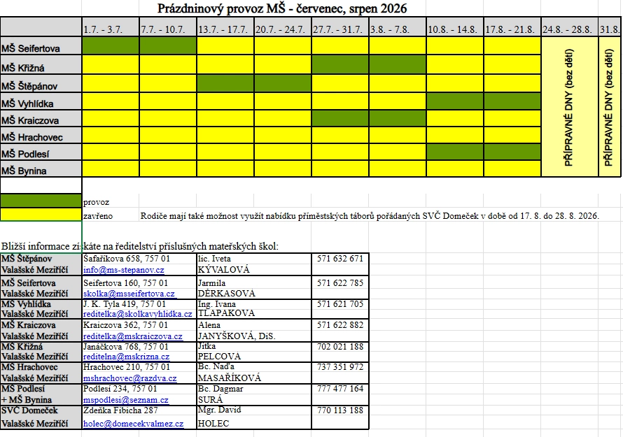 Informace k platbě za pobyt v náhradní mateřské škole – MŠ Křižná v období od 27.7. – 7.8.2026: